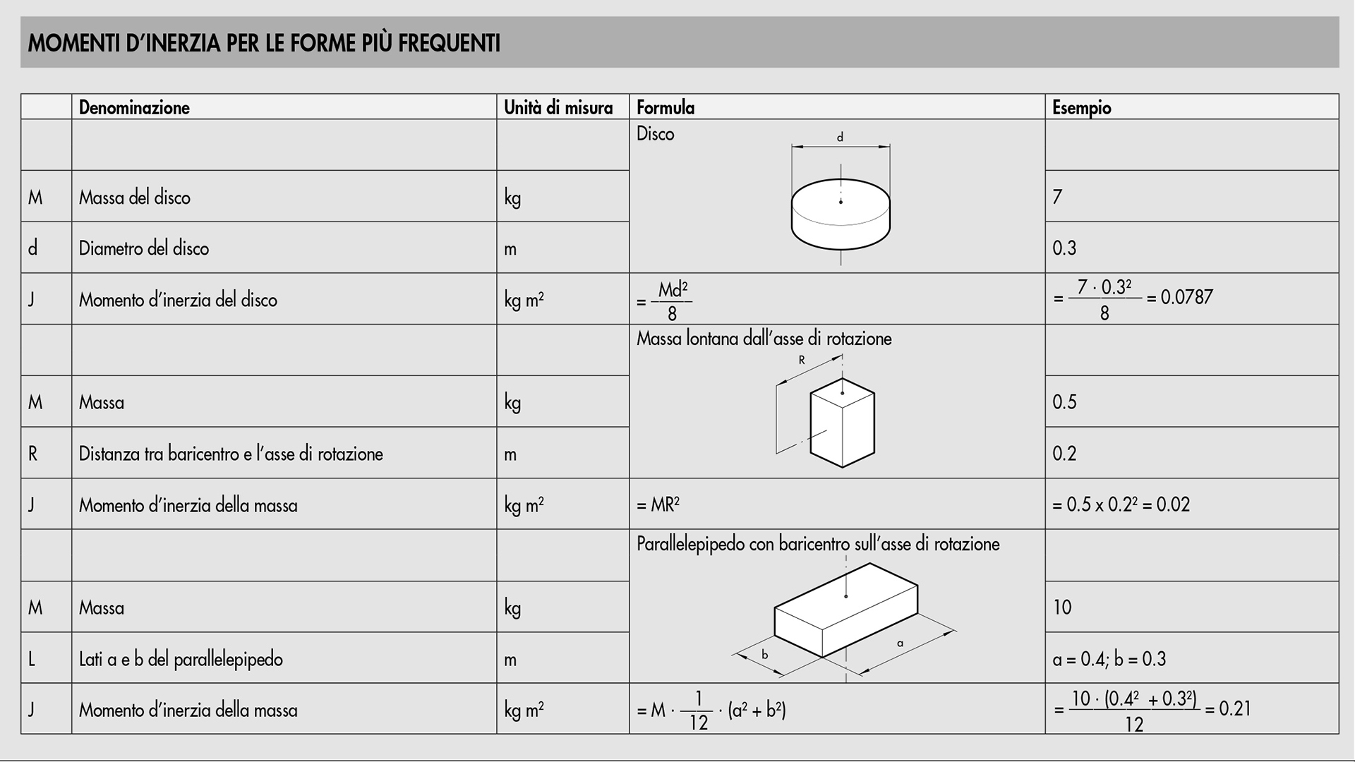 Momento di inerzia J rispetto all'asse di rotazione (kg • m²)
